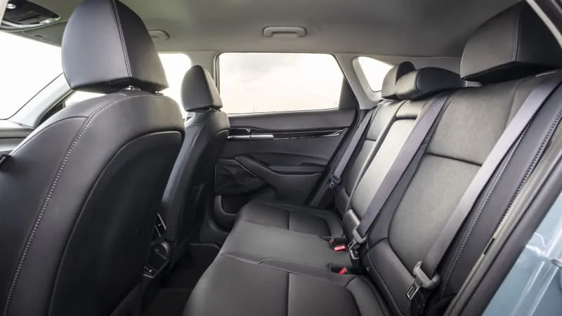 Also helping the interior’s visual appeal is the new-for-2024 curved twin-screen housing that stretches across the dash. The base LX gets a combination of 4.2-inch instrument panel and 8-inch infotainment screen with bordering physical buttons; all other trims get 10.25-inchs screens for both the instruments (complete with four design choices) and infotainment system. The latter’s physical menu controls and knobs migrate down below the climate controls, which sounds weird, but puts them quickly at hand. Although the base system is certainly easy enough to use, the upgrade is one of the better, most feature-packed and easiest-to-use infotainment systems out there. We also like the two-tiered storage solution intended for smartphones: the smaller tray above meant to grip and store a phone (it’s also a wireless charger in upper trims) and the deeper bin below with two USB ports that can store another phone or whatever you want. Unfortunately, Apple CarPlay and Android Auto cannot be wirelessly connected, but the wired versions are standard.