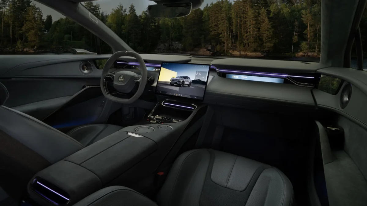 Climb into the Eletre S and shut the door, and you’ll experience even more Lotus firsts: dual-paned window glass, and a fancy soft-close feature that gently but firmly seals the door closed. The very un-Lotus-like features continue, with a cabin whose ‘niceness’ leaves previous Lotuses in the proverbial dust. Though I wasn’t privy to a build sheet, my S model tester appeared generously appointed, with lots of soft-touch surfaces including Alcantara on the center console all the way to the bottom of the retractable cupholders.