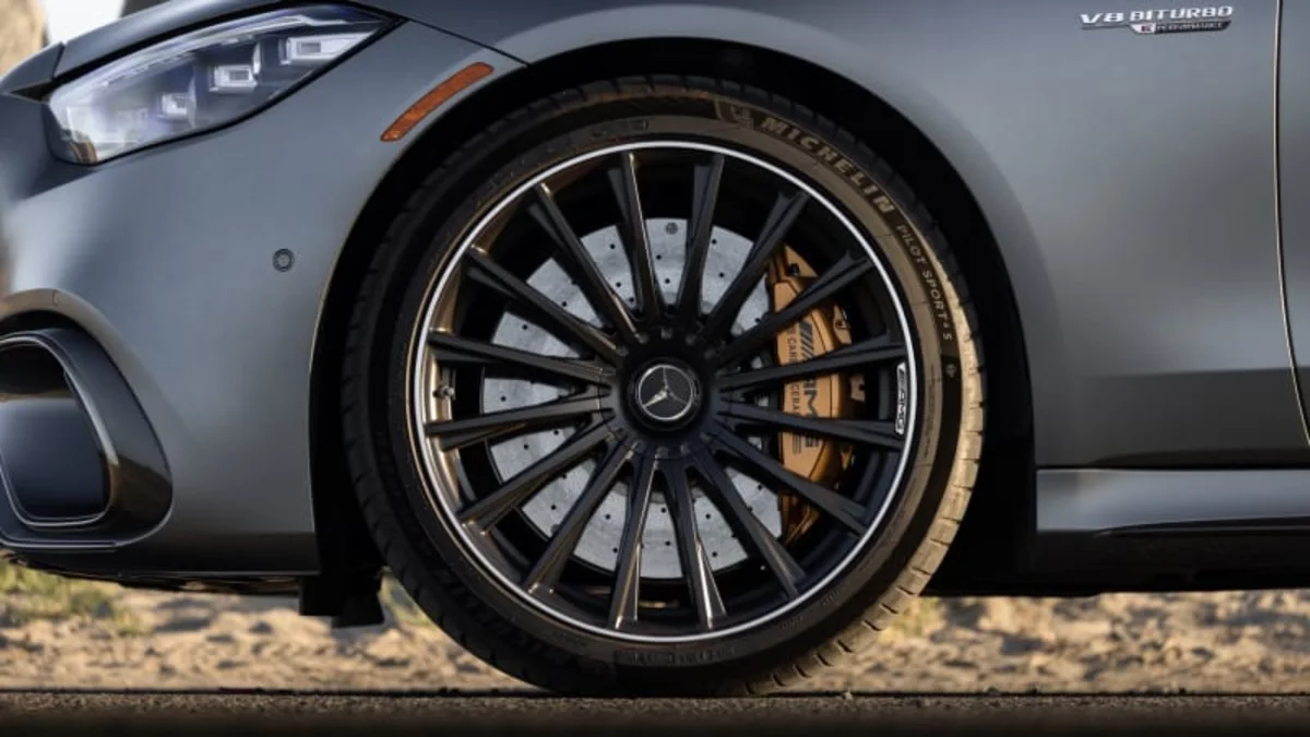 To ensure that the S 63 E Performance’s chassis can keep up with the powertrain, AMG outfitted it with a specially tuned air suspension and adaptive dampers as well as two-piece electromechanical anti-roll bars that can connect and disconnect as needed for more body control or improved ride quality. Standard rear-axle steering also allows the rear wheels up to 2.5 degrees of steering angle, which is less than what the non-AMG S-Class offers, but it’s better than nothing. At speeds below 62 mph, the rear wheels turn in the opposite direction of the front wheels, effectively shortening the car’s wheelbase, while at higher speeds the rear wheels turn in phase with the fronts to improve stability.