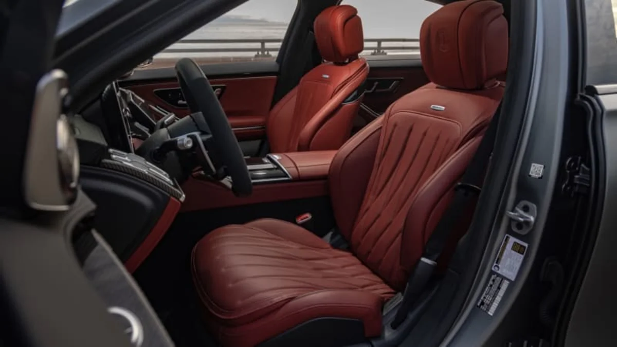 Settled in at the helm, the supple bolstering of the front seats – which are virtually identical to the thrones in the standard S-Class aside from their lack of headrest pillows – make it clear that the S 63 E Performance’s mission is more about fast grand touring and unhurried cruising rather than corner carving.