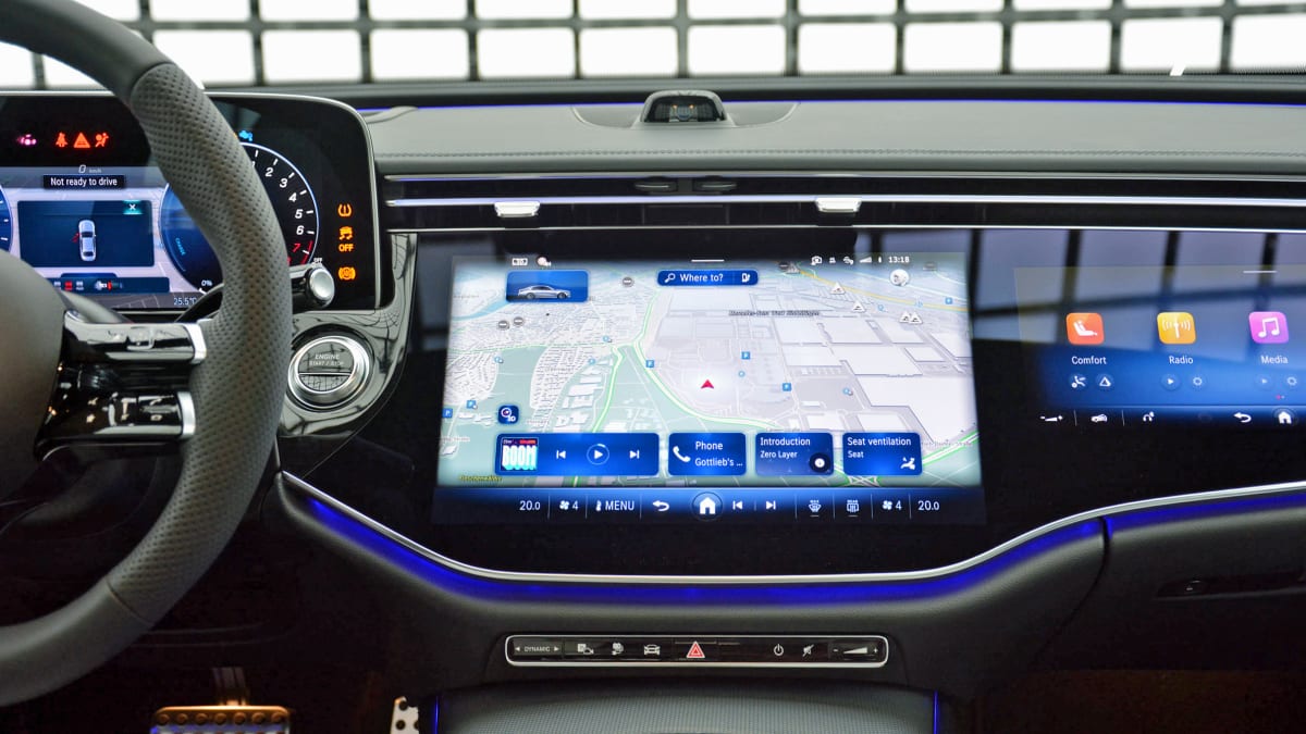 Special attention was given to the MBUX system’s interface. Mercedes-Benz, like many of its peers and rivals, is realizing that driving around with what’s essentially a big tablet causes distractions. “We created new icons. They look more like smartphone icons, so they’re more intuitive to operate while driving because they’re easier to recognize,” pointed out MBUX expert Christopher Gäng. Speaking of distractions, isn’t driving on the autobahn while your passenger energetically tries to shoot birds at evil pigs a big one? Gäng says no: the driver can’t see what’s displayed on the passenger-side screen, but the driver-facing cameras (there are two) can tell if the driver isn’t looking at the road and darken the screen. Besides, the passenger-side screen is only on if there’s a passenger sitting in the front. It’s off if there’s no one there.