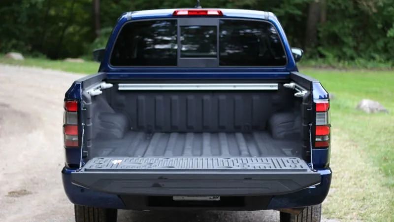 Speaking of cab and bed options, the Frontier can be had in either an extended cab (King Cab) or a full four-door crew cab. The King Cab comes only with the longer bed option (72.7 inches), but the crew cab can have either the short (59.5 inches) or long bed choices. The combination of crew cab and long bed is a feature only shared with the Toyota Tacoma. We take a deep dive into the Frontier bed in this driveway test.