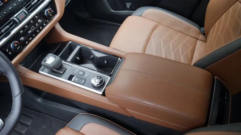 The center console features a vast pad to charge your smartphone, be it wired or wireless on upper trims, plus a smaller bin to prop up your phone should you prefer. The cupholders are big and versatile, the under-armrest and door bins are large, and there’s bonus storage under the console. You can also get a removable center console in between the available second-row captain’s chairs.