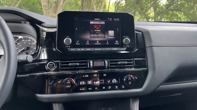 A 9-inch touchscreen is standard on the SL and Platinum trim levels, and features a user interface that really nails a sweet spot of aesthetics and functionality. There are hard buttons and knobs, plus a stationary row of on-screen menu icons, which are always appreciated. The display itself is high resolution and features vibrant colors with attractive, legible graphics. It may not be ultra-wide (as in the Palisade and Telluride) or tall (Explorer), but it’s big enough, easy to see and works well. The 8-inch screen found in the S, SV and Rock Creek trims (pictured below with black interior) has fewer features to control and obviously is smaller, but its functionality is essentially the same.