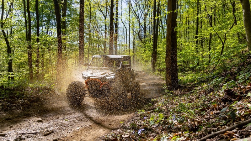 Despite the additional protection from the elements that the spiffier roof system and our unit’s optional low windshield provide over the outgoing XP, well … you will get wet on this ride if your route is splatooned with deep puddles. We got half soaked and half caked in dirt after several hours on the trails of Windrock Park in Tennessee, but that’s all part of the fun.