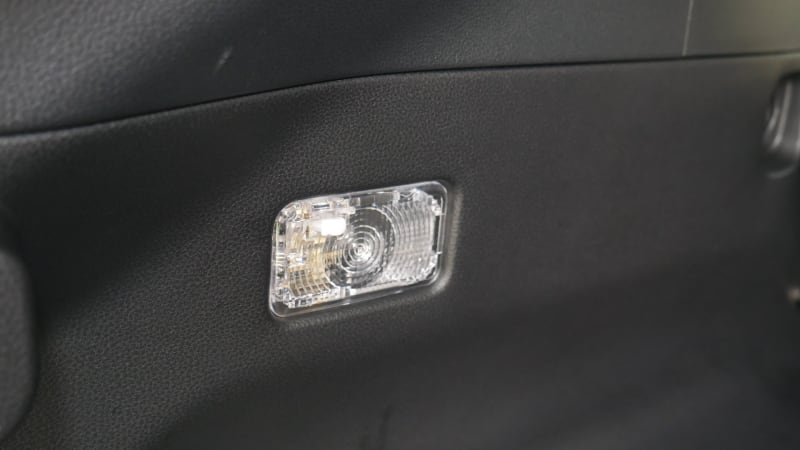 Here is the cargo area light. Its placement at the side is less useful than in the liftgate because stuff will block it, but note the manually operated switch. This would let you leave the liftgate open without draining the battery with a light unnecessarily on.