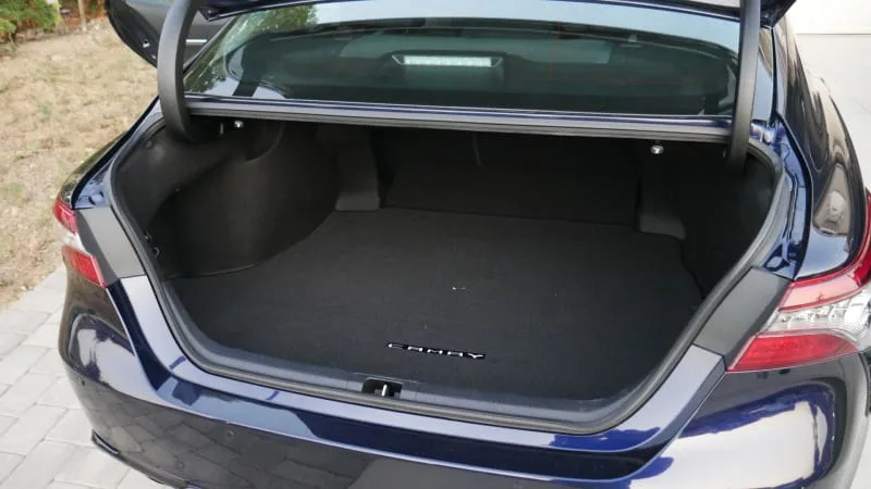 The trunk offers 15.1 cubic-feet of space, which is less than an Accord or a Sonata. In comparison to the Accord in particular, the trunk is a bit narrower and not as deep. However, that says more about those other sedans than the Camry. The trunk’s still really big, with enough room for five roller bags and plenty left over. You can get a better feel for how much stuff the trunk can hold in our Camry luggage test cargo review.
