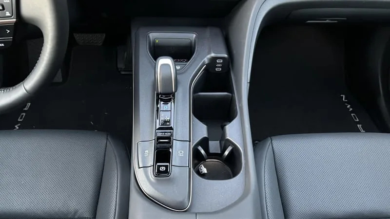The interior design itself is the opposite of flashy, but it’s quite functional and exudes a quiet premium feeling that fits the Crown’s hefty price tag. And while the materials quality is fitting, it doesn’t go above and beyond like the discontinued Avalon did with its pretty colors, stitching leather and budget-Lexus aesthetic. A restrained use of piano black plastic throughout should be a boon for long-term cleanliness and niceness, though. Its center console features a lovely, vertically oriented wireless phone charger that secures the phone in place and makes it easy to lift in and out. The little nub of a shifter is the same monostable design that has been trickling throughout the Toyota/Lexus lineup since the new NX. Its functionality is the same as what was found in multiple Prius generations, and doesn’t take up too much space or ergonomically get in the way of anything. Often-used controls get surprisingly large buttons to the rear of that shifter, and a pair of large cupholders slot in on the right side of the console. The pair of USB Type-C outlets are in a convenient spot for both the passenger and driver to easily plug in if need be, too. Overall, the layout is logical and works well in practice.