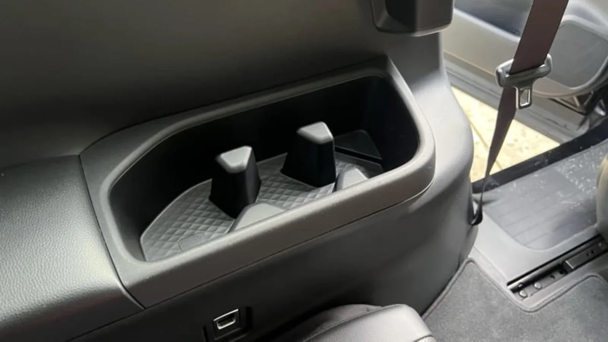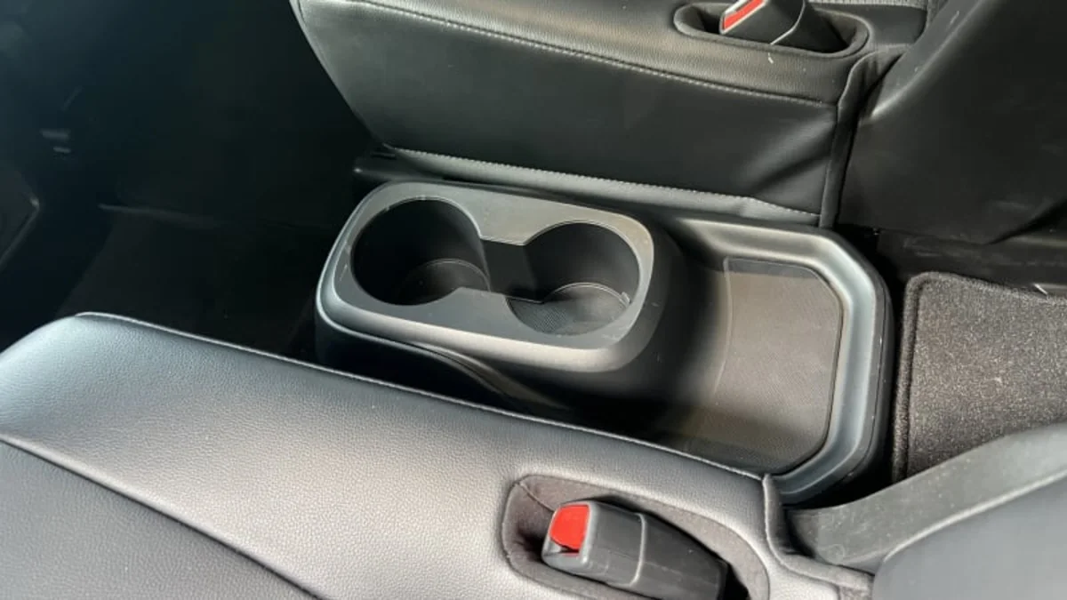 The third-row armrests have these neat cupholders that can be used as sort of a catch-all storage spot. They are divided into three sections, with some extra space to spare. Theoretically, you could fill those cupholder spots, and still tuck a phone in beside them. They really don’t look like any of them will accommodate a Nalgene, though.