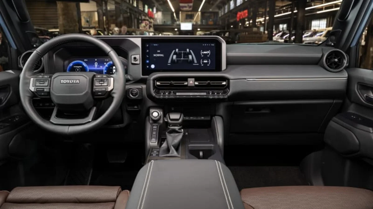 Two different screen setups will grace the interior of the new Land Cruiser, with the 1958 model getting an eight-inch touchscreen and the other two getting a 12.3-inch touchscreen. Both come with wireless Apple CarPlay and wireless Android Auto as standard, and Toyota says they can receive over-the-air updates as the company pushes them out. The 1958 model also has a smaller digital instrument cluster flanked by analog gauges, while the other trims have a full-screen cluster with no analog gauges. Just like all new Toyota models these days, the company’s Toyota Safety Sense 3.0 system comes standard, which gives you the full assortment of driver assist controls. Every Land Cruiser will enjoy niceties like adaptive cruise control, lane-tracing assist, auto high-beams, blind-spot monitoring and much more.