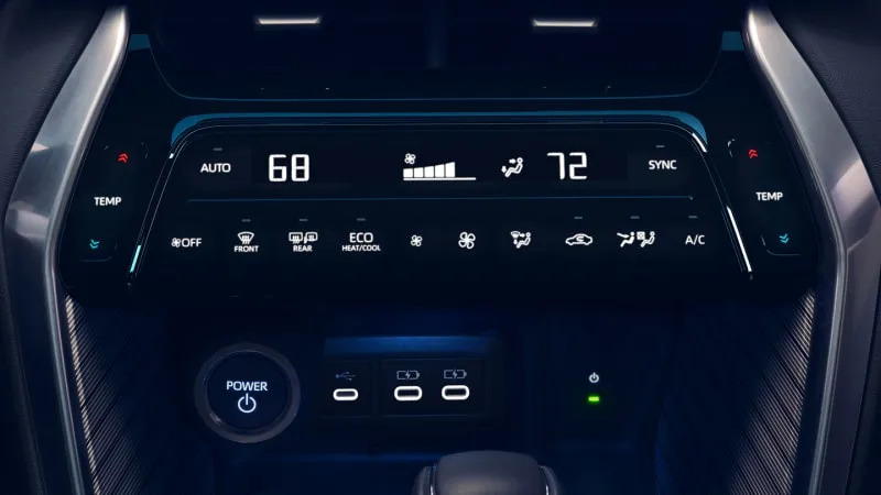The big dash-top screen is the interior’s centerpiece. It measures 8 inches on the LE, but the XLE and Limited get a 12.3-inch unit. The operating system is the newest Toyota has to offer, featuring bright, minimalist graphics and natural speech recognition. It’s responsive and runs quickly. The shortcut icons on the side closest to the driver are easy to reach, but they unfortunately disappear when you use Apple CarPlay or Android Auto, meaning you have to click-click-click to escape the Apple/Android interfaces rather than using a simple Home button like Toyota used to feature. There are other annoyances we discovered, particularly with the radio operation, that can make the new system less user-friendly than what you’d find in most rival systems.