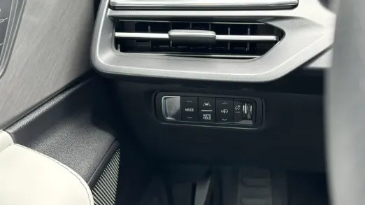 Which is good because changing the drive modes is a pain. No, not because they’re buried in a touchscreen, but because the “MODE” toggle button is buried down by your left knee (pictured above right) next to buttons for suspension height adjustment, Auto Hold, lane-keeping and the parking brake. They’re an afterthought, and frankly, that’s a decent way to summarize the entire cabin.