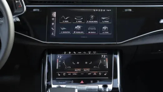 Audi didn’t change up the engine options. The Q7 is available with the 45 TFSI – a 2.0-liter turbocharged inline four-cylinder engine with 261 horsepower and 273 pound-feet of torque, available on the Premium and Premium Plus trims. The 55 TFSI, available on the Q7 and standard on the Q8, is a 3.0-liter turbo V6 with 335 ponies and 369 lb-ft of torque. The SQ7 and SQ8 pump up the bass with a 4.0-liter turbocharged V8 with 500 ponies and 568 pound-feet of torque. All engines are paired with an eight-speed automatic transmission and all-wheel drive.