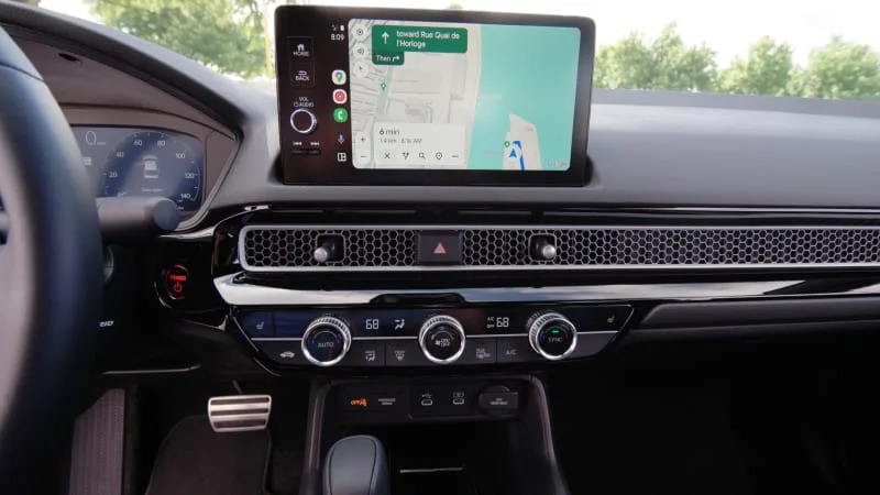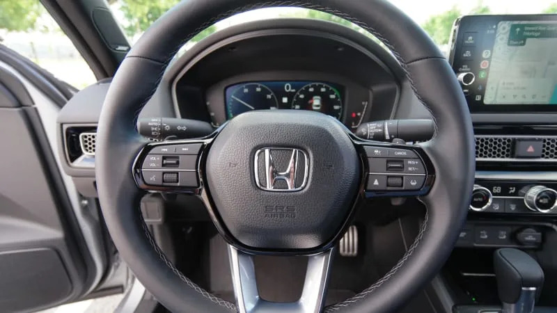 While we didn’t test anything but the new Civic Hybrid sedan, a 2.0-liter four-cylinder remains the base engine in the LX for $24,345 and Sport for $27,345. Honda says it’s newly designed for ’25 to make 150 hp (down 8) and 133 lb-ft (down 5 but delivered earlier) and improve fuel mileage by between 1 and 2 mpg, depending on trim. The Sport Hybrid starts at $29,845. Stepping up to the Sport Touring Hybrid will ring the register to $32,845 and bring with it the aforementioned infotainment and digital cluster tech, leather seats, a Bose audio system and more. The sedan goes on sale as this story is published, with the hatchback following shortly thereafter.