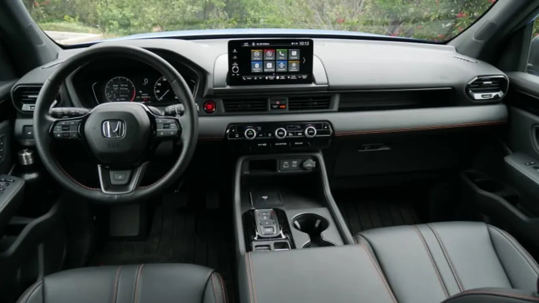 The base LX trim level is no more, meaning the base price has gone up considerably since the $41,295 Sport becomes the de facto floor. On the other end of the trim level ladder, the Pilot Black Edition (pictured above) makes its return as the new range-topping model. It builds upon the loaded Elite trim level with gloss-black 20-inch wheels, a gloss-black grille bar and mirror housings, and additional non-gloss black trim in the bumpers, doors and windows. It also gets “Black Edition” badging because of course it does. Like the previous-generation Pilot Black Edition, the interior sees special red-accented black leather along with logo’d floor mats and seats.