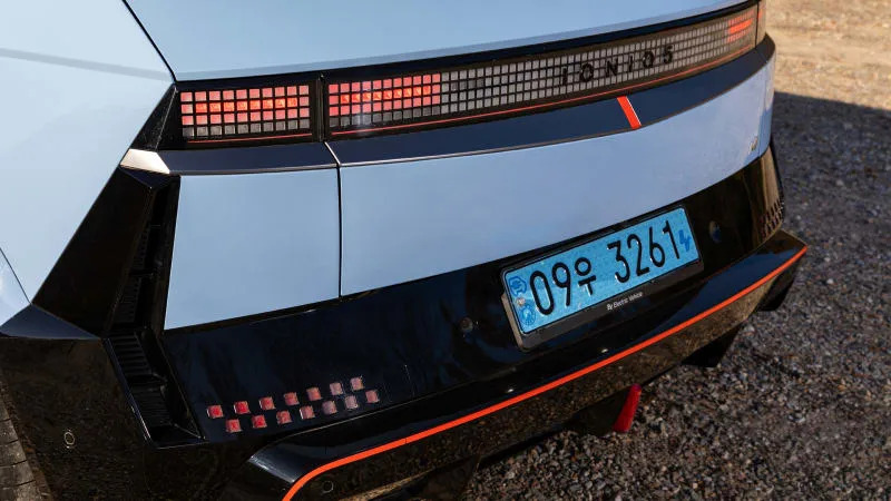 From there, it’s more of what you expect. The Ioniq 5 N has 21-inch wheels and Pirelli P Zero 275/35 summer tires at all four corners. The body is stronger with increased lateral rigidity, and the electric drive motors are encased in WRC-like axles to better handle the increased torque while also reducing unsprung mass. Stiffer chassis components and a quicker steering rack round out the changes, and the whole car is bundled up in a hot-looking wrapper with “Luminous Orange” accents and purposeful bits of aero add-ons.