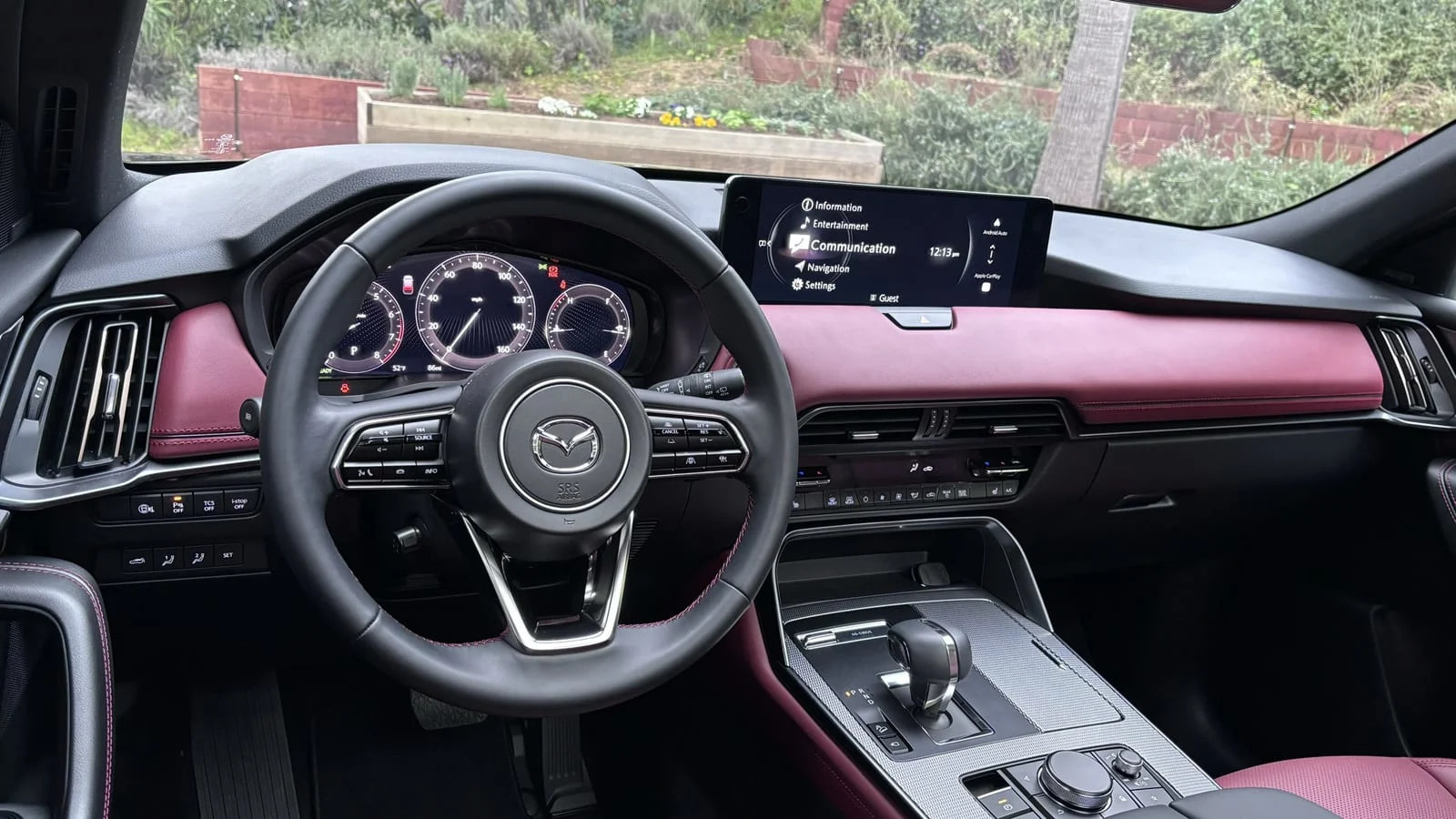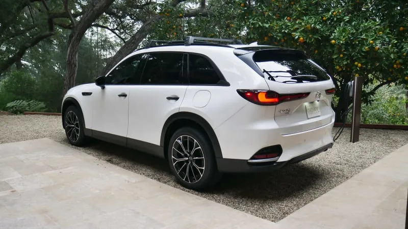 Cons: Infotainment won’t be for everyone; otherwise identical three-row CX-90 is more versatile; unrefined PHEV with so-so electric range