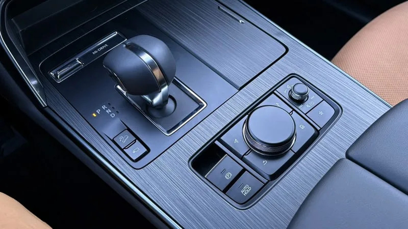 Every trim level gets the same 12.3-inch central display. It operates as a touchscreen only when operating Apple CarPlay and Android Auto, which can also be operated by the center console control knob and supporting menu buttons. Doing so is a bit confusing, and it takes some playing around with to figure it out, but we’ve found in our CX-90 that having the redundant rotary knob/button control of CarPlay and Android Auto can actually be a benefit. Now, if you want to do anything else with the infotainment system such as select a radio station, program the native navigation system or adjust some other vehicle setting, you must use the center console controls. Generally, we’re OK with this, as it’s perfectly intuitive and doesn’t divert your eyes away from the road as much. To that end, the screen is much higher on the dash and closer to the driver’s field of vision. It’s also further away from your hands, which is one detriment to using the CarPlay/Android touch capability. In total, it won’t be for everyone and is certainly unusual, but we think it’s fine.