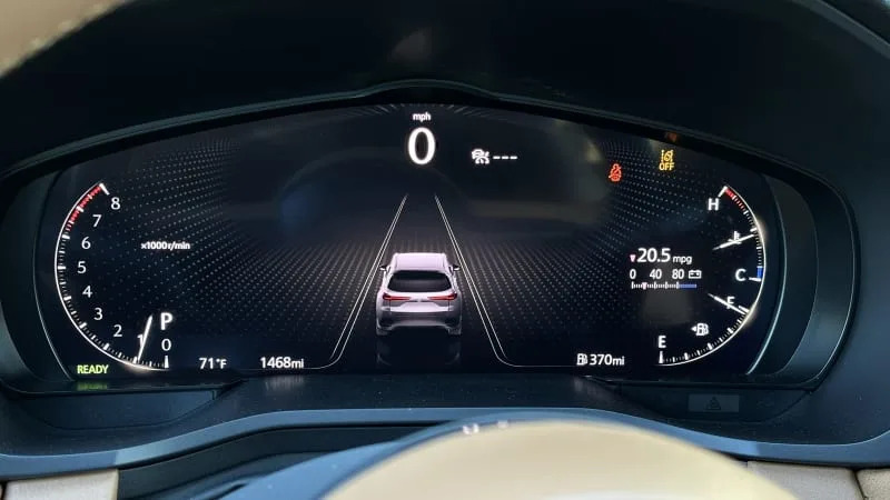 All but the base Preferred trim level have a 12.3-inch digital instrument display with two main views: a traditional three-gauge layout and, when adaptive cruise control is at the ready, a more modern design that pushes the speedo and tach to the screen edges while an active driver assistance graphic illustrates what the car is doing and detecting around it.