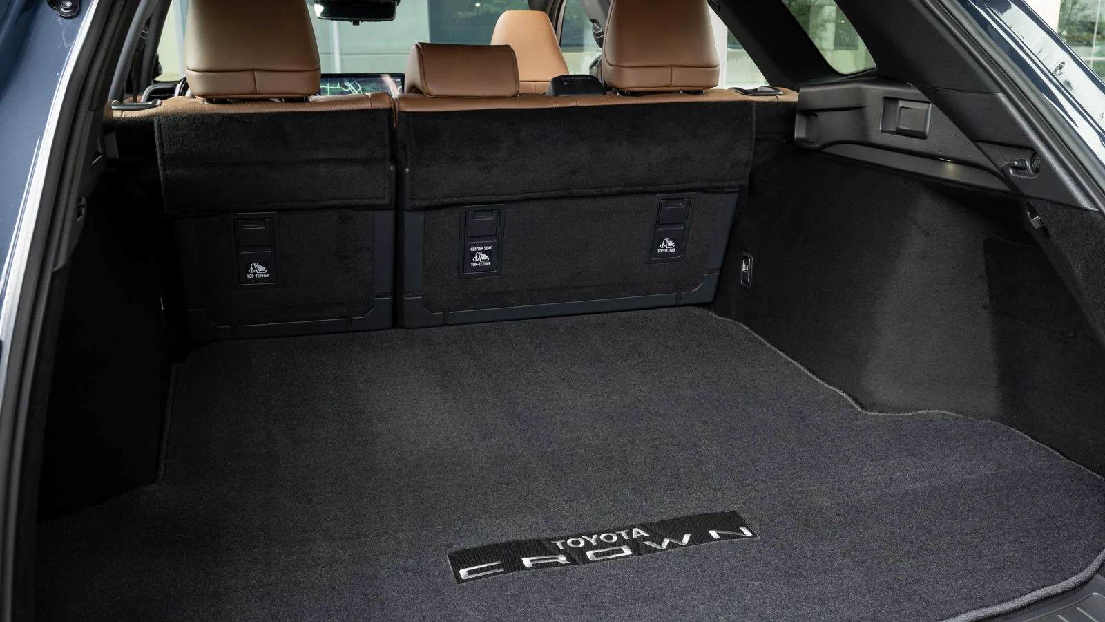 Returning inside, the front cabin has the same space-efficient vertical phone charger bin as the Crown Sedan, plus two USB-C ports and a gap between the two useful cupholders that lets you place an extra phone. Toyota’s 12.3-inch touchscreen infotainment system is standard and benefits from the recent, game-changing update that keeps the system’s left-side menu icons permanently docked while using Apple CarPlay (though you’ll be click-click-clicking back and forth with Android Auto). A 12.3-inch instrument display with different layouts is also standard.