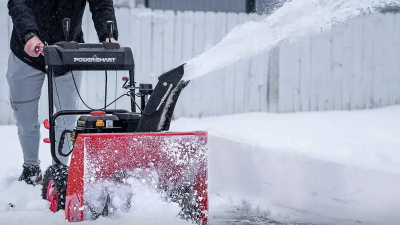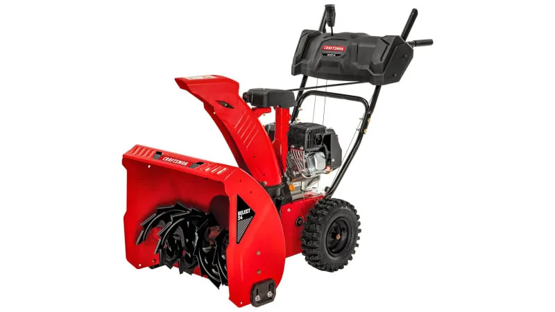 This Craftsman two-stage snow blower is another powerhouse of a snow blower. It’s got a 208cc gas-powered engine and features 12-inch sawtooth augers to help cut through ice and heavy snow. Like the PowerSmart above, this too can start with the push of a button and has 6 forward self-propelled speeds and 2 reverse self-propelled speeds to help with control in the worst of conditions. The Craftsman put extra care into creating ergonomic controls for ease of use during bad weather. This snow blower also features a huge 200° range for chute control and can throw snow up to 40 feet.