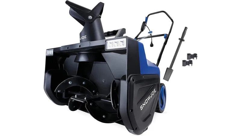The EGO Power+ 21-inch snow blower has power to spare. This beast will throw your snow up to 40 feet, and its steel auger promises to cut through ice and snow 50% faster. It features a brushless motor and, naturally, since it’s electric, doesn’t rely on gasoline or a ripcord start. This snow blower comes with not 1 but 2 of EGO’s 5.0Ah batteries and a dual charger, so you’ll be able to charge them both up at the same time. There are built-in LED headlights for when you’re taking care of business early in the morning or later in the evening and like the Greenworks option above, this one also features a quick-fold handle for storage. The clearing width on this EGO snow blower is 21-inches and when using both batteries in tandem, this snow blower can clear “a 12-car driveway with 8 inches of snow” before needing a re-charge.
