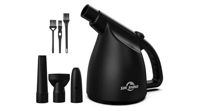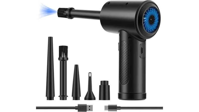 We don’t recommend using a leaf blower to clean out your car’s interior. We do however recommend buying a small electric handheld duster to do so. A small blower like this is great for cleaning dust out of air vents and other areas of your car that are hard to reach without a small brush or Q-tip. This model from Fulljion is designed for cleaning dust from computer cases, keyboards, cars, fans and more. What’s even better about a rechargeable blower like this lets you ditch buying disposable cans of air duster.
