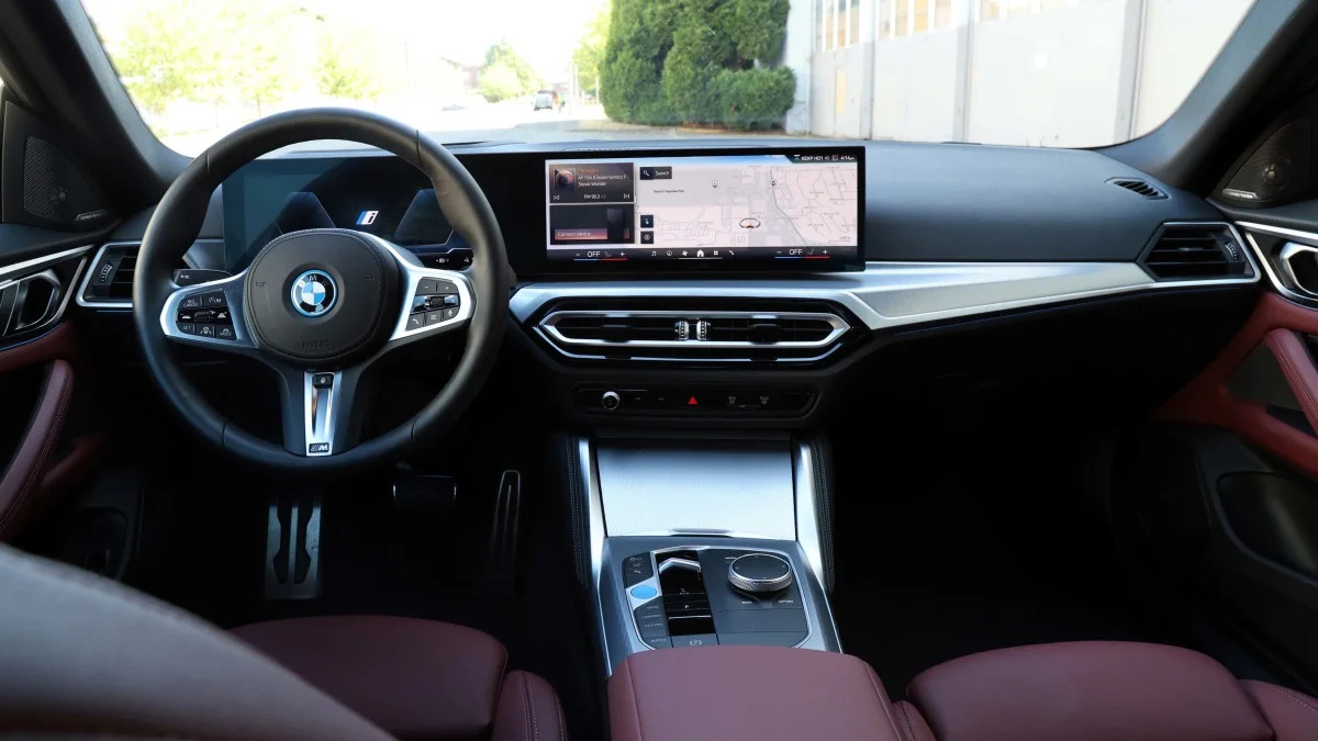 The i4, like any EV, has regenerative braking, but awkwardly wedged sideways into the dashboard’s chevron-shaped power meter was the word “Adaptive.” This system works with the car’s radar to vary/increase the rate of regeneration being applied depending on the traffic ahead as you’re slowing down. It’s not that different from what a car does while on adaptive cruise control, except this is working all the time. Lay off the brakes as you approach a red light, and it feels much like an automatic transmission going through downshifts. I liked the way it worked.