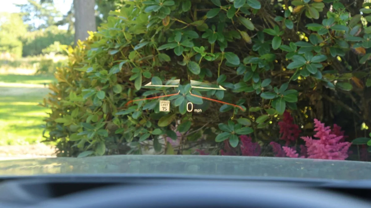 The head-up display uses some odd symbols that were trying to communicate something. Was never sure what. Comfort mode has a basic, three-sides-of-a-rectangle-shown-in-perspective thing. Sport mode has a symbol that looks like you’re trailing behind a Federation starship going down the road. As you go faster, the sides pinch in, maybe to let you know you’re at warp? And Eco-Pro mode has a diamond, which also shifts in appearance depending on what you’re doing with the accelerator vs. regen. And at random times some lines come in from the sides for no discernible reason. It was reminiscent of the old Atari “Battlezone” game, except you didn’t get to blow up a tank or earn points.