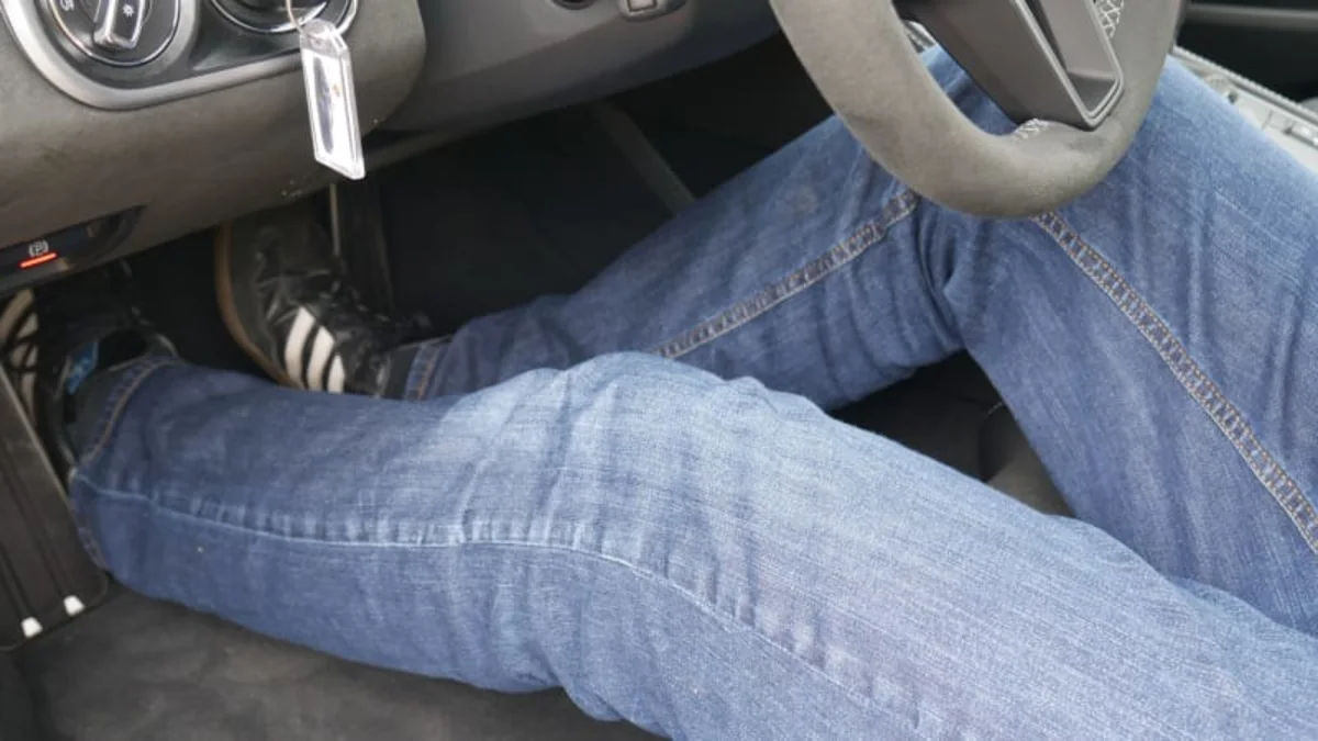 I’ve driven plenty of Porsches with the fixed-rake full-bucket seats at this point and generally been OK with them. I naturally sit upright in a car, and I prefer a firm seat. That said, their lack of adjustability is a greater issue in the 718 than it is in the 911. Specifically, it’s the lack of height/tilt adjustment for the forward portion of the seat, which would yield greater under-thigh support, particularly for those long in leg. Porsches with fully adjustable seats are superb in this regard, including seats in other 718s. As you can see in the above photos, though, my right leg has zero under-thigh support and, as a result, most of my leg weight rests on my heel. That gets old. And sore. This is because I need to sit closer to the brake and throttle than is ideal because I also need to fully depress the clutch. On a track, this isn’t an issue since comfort goes out the window and I prefer sitting closer to the wheel anyway.