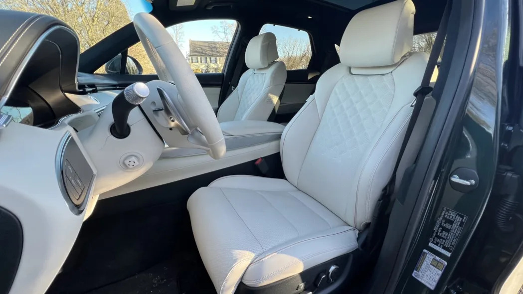 I put my daughter behind me in her front-facing car seat. With boots on, she would freak out about her feet being stuck behind my seat. I had to move myself forward to a less-than-ideal driving position just so she could be somewhat comfortable behind me. I wouldn’t want to sit behind an adult in the GV70. Other compact electric crossovers — dedicated EV models, specifically — make great use of interior space, often feeling larger on the inside than they look on the outside. Not so with the Electrified GV70, which is based on the gasoline model and built with internal combustion packaging in mind. If you didn’t have to design around the motor up front, you could expand part of the cabin forward and give more space to the occupants.