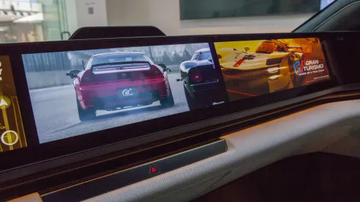 From a collage of app tiles similar to a Netflix menu, one can select digital amusements like movies, video games, even karaoke. And to answer the million dollar question, you can indeed play Sony PlayStation games in the car. There’s no actual console on board, but by connecting a PS4 or PS5 remotely, gamers can stop a game at home and pick up where they left off in the car via an in-car controller.
