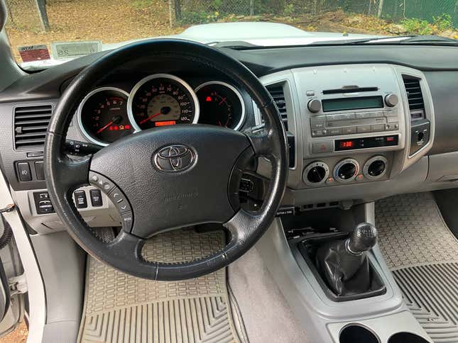 The cabin seems nice as well. Accommodations include the aforementioned A/C as well as cruise and power windows, mirrors, and locks. A rear slider offers additional ventilation for the backseat passengers. The TRD Sport package adds some visual enhancements, including that kind of goofy non-functional hood scoop. According to the ad’s description, everything on the truck works as it should.