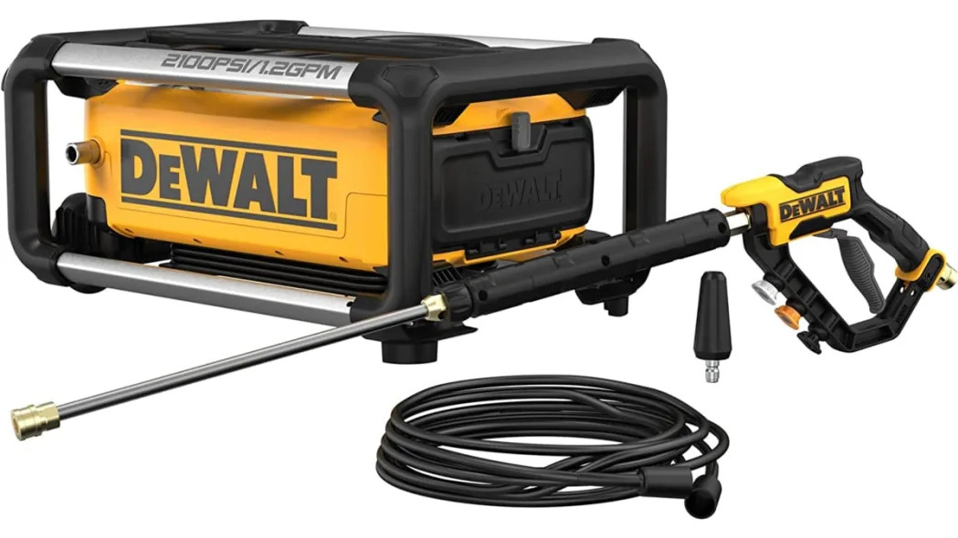 This heavy-duty pressure washer from DeWalt has a rugged design to stand up to the toughest cleaning jobs and job sites. It only weighs 24 pounds and has multiple grab points making it easier to transport around job sites. Features a 25-foot kink-free hose, a 35-foot power cable, and an included soap bottle for detergent cleaning. Designed to be stored either vertically or horizontally.