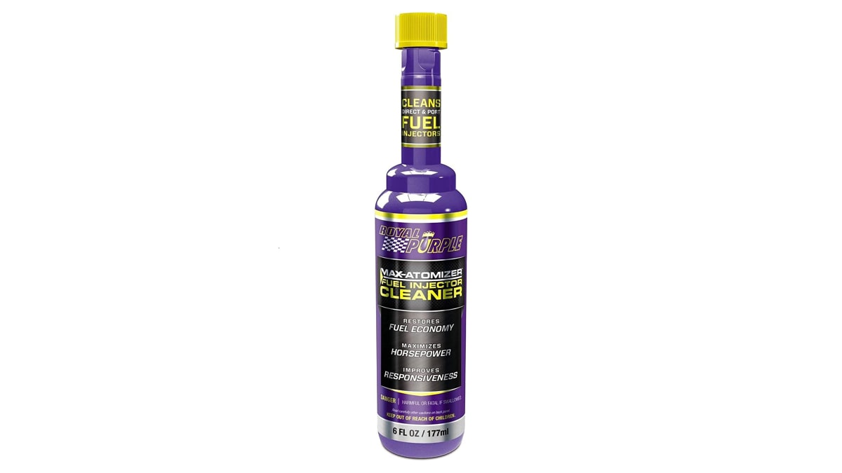 The Royal Purple Max Atomizer Fuel Injector Cleaner can be used in both gasoline and diesel engines. This product can stabilize ethanol, restore fuel economy, maximize horsepower and improve responsiveness.