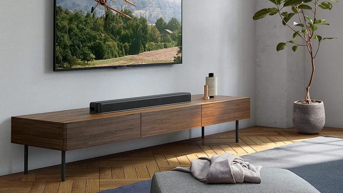 A 7.1.2ch Dolby Atmos/DTS X device with Vertical Sound Engine and dual built-in subwoofers. It’s also 4K HDR passthrough-enabled and features a slim, modern design.