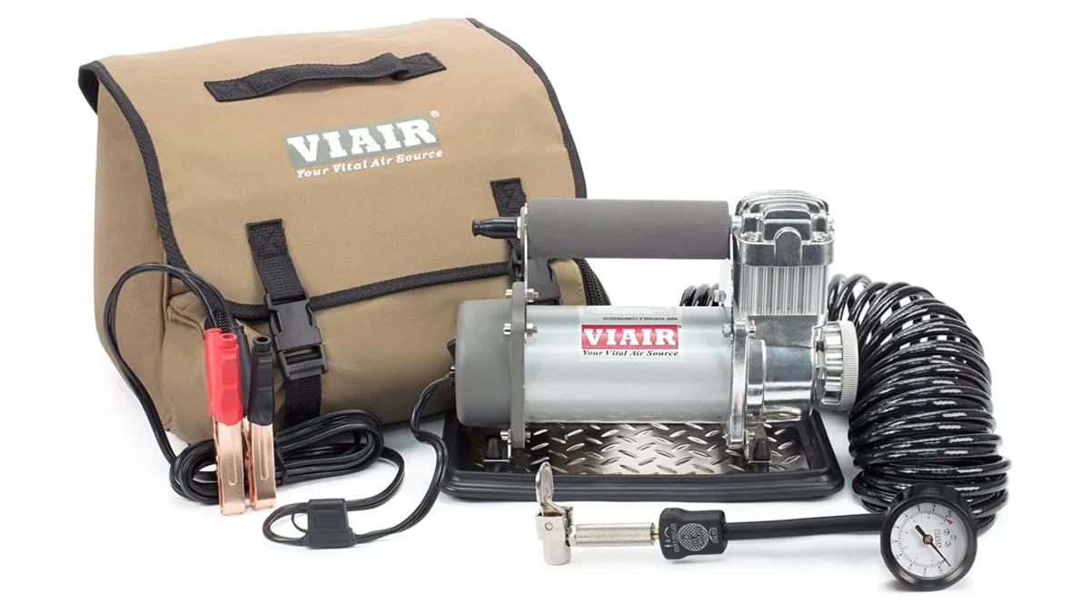 This VIAIR 400P Portable Compressor Kit has a maximum working pressure of 150 PSI and a 33% duty cycle. The 12-volt motor includes direct dual clamps that attach to your vehicle’s battery along with a 40-amp inline fuse. This air compressor is great for vehicles and can inflate tires up to 35”.
