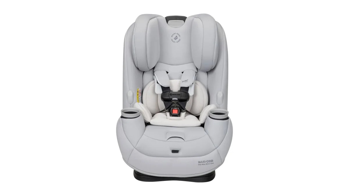 The MAXI-COSI Pria Max option is a 3-position seat that can sit children from 4 lbs all the way up to 100 lbs depending on the configuration. It employs a QuickFit shoulder harness with a magnetic chest clip to make getting your kid in and out quick and easy. No wood or chemicals were used in the creation of the fabric and padding and installation should be effortless thanks to the one-click LATCH feature.