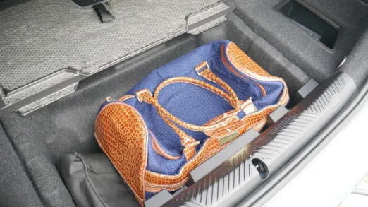 For the purposes of cramming the most luggage possible in the trunk, though, you may need to relocate that charge cord and use the space for a bag. That’s exactly what I did. Fancy bag goes here.