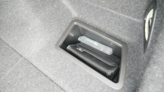 Back to the trunk. Each side has a handy little grocery hook. There’s also a small bin on the right side to store the owner’s manual or whatever.