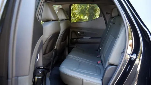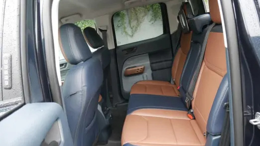The specs say differently, but after testing them both, the Maverick has the better back seat. Legroom might effectively be a wash, but the seatback in the Santa Cruz is more noticeably upright than what you’ll find in the Maverick. Then there’s the matter of accommodating a rear-facing child seat. In short, there was more space remaining for the front seat passenger in the Maverick. Even a 6-foot-3 passenger was perfectly comfortable up there with a natural seatback angle and space between my knees and the dashboard. In the Santa Cruz, the seat was pushed far forward and his knees were jammed up against the dash. Admittedly, this could be as much to do with the Santa Cruz’s dash design, which juts further out into the cabin.