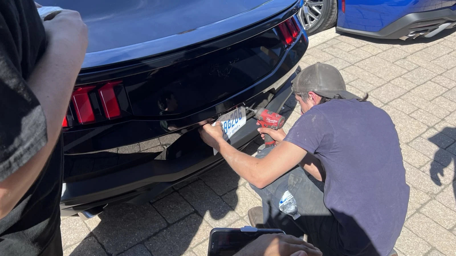 The four Mustangs donated were all of the 2023 model year: three GTs (one a convertible) and one EcoBoost. Some were originally ordered by customers, some were headed into dealer inventory. These four cars suffered flood damage during a storm last year while parked at a holding lot in New Boston, Michigan, waiting to be loaded onto a train. Ford Market Area Coordinator Michael McLean described it as “level two” flood damage, “which means the water came only about as high as the carpet.”