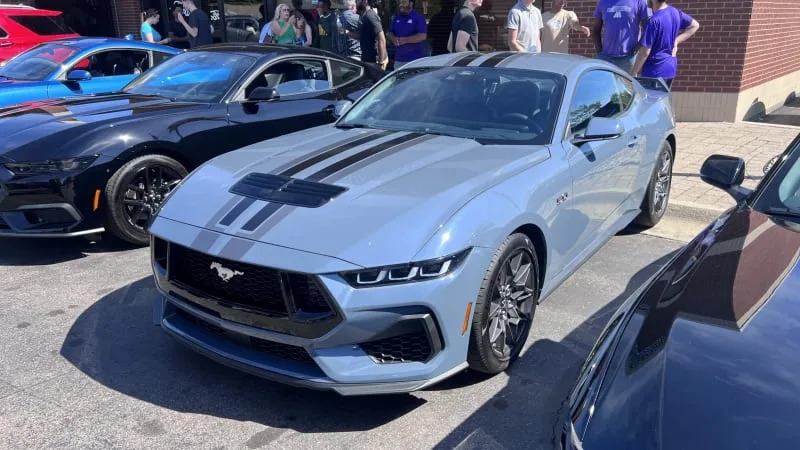 The four Mustangs donated were all of the 2023 model year: three GTs (one a convertible) and one EcoBoost. Some were originally ordered by customers, some were headed into dealer inventory. These four cars suffered flood damage during a storm last year while parked at a holding lot in New Boston, Michigan, waiting to be loaded onto a train. Ford Market Area Coordinator Michael McLean described it as “level two” flood damage, “which means the water came only about as high as the carpet.”