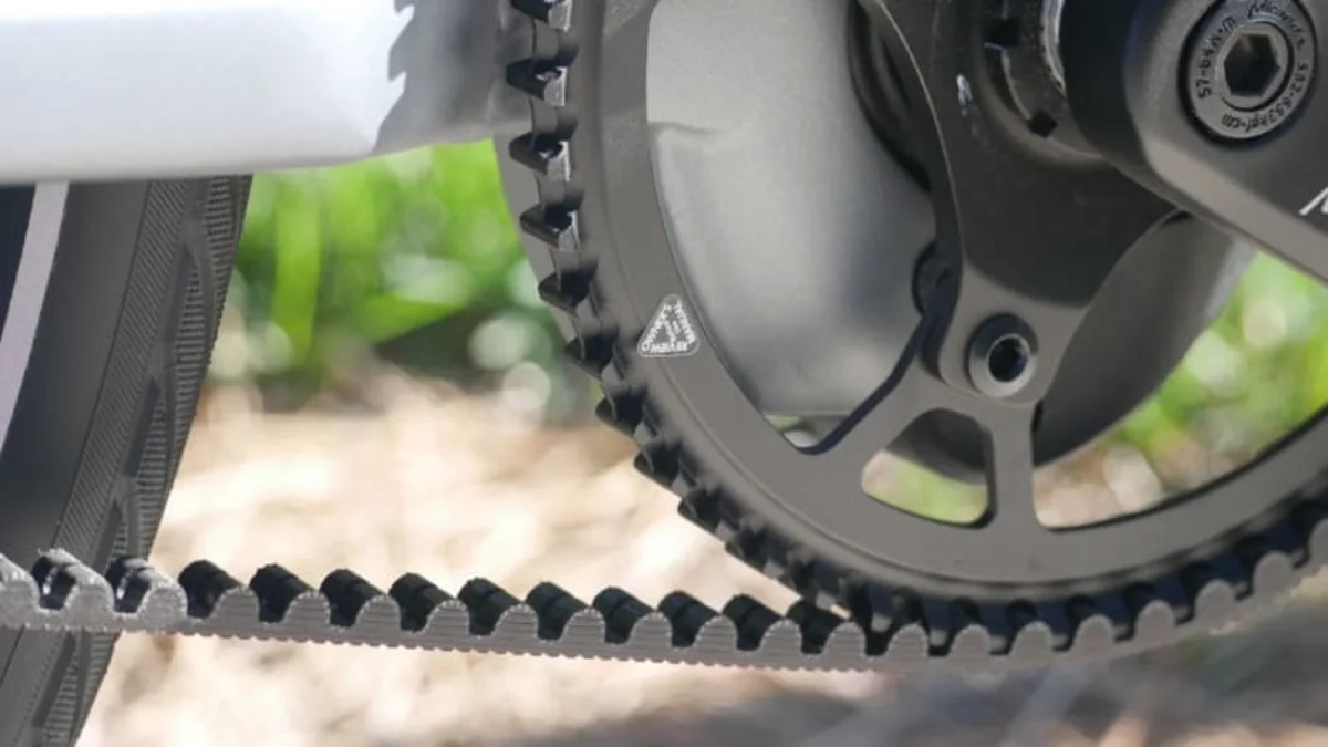 The NuVinci hub allows for another novel element of the C380+: the Gates carbon belt drive, which takes the place of the typical chain. The belt consists of nylon teeth and carbon fiber cords, which means there’s no need to oil it, you don’t have to worry about dirt clogging it up, and well, it looks a lot cooler. While the NuVinci hub can work with a chain, and does so in Gazelle’s lesser Ultimate T10 model, the carbon belt doesn’t work with a derailleur and therefore needs something like the CVT-like NuVinci. It’s one of the key reasons the Ultimate C380+ costs more than the T10, along with its more powerful motor and fork-mounted shocks rather than the T10’s single internal-to-headset shock (in the post at the base of the fork).
