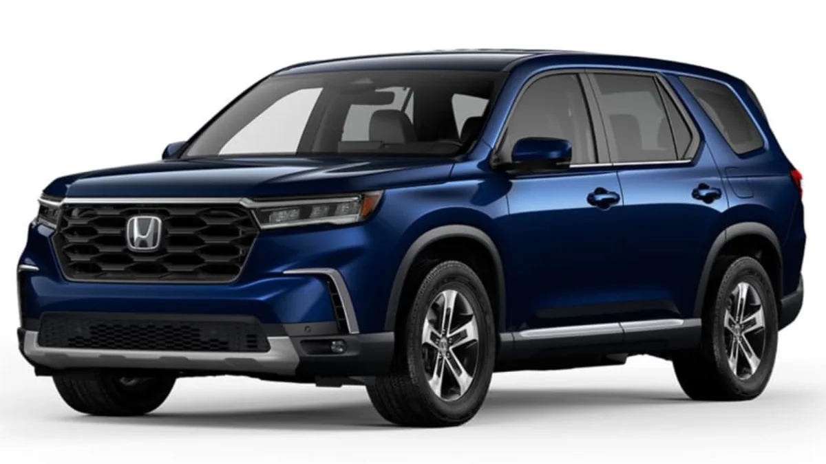The 2023 Honda Pilot starts at $36,300 before destination in base LX trim. Our budget won’t quite let us buy into the rugged new TrailSport trim, but we can take two steps up from base to EX-L trim, starting at $42,300. For that, you get leather seating, Apple CarPlay, power tailgate, parking sensors, and more. Add AWD for $2,100, towing package for $750 and second-row captain’s chairs for $300, and you’re at $45,450. Done.