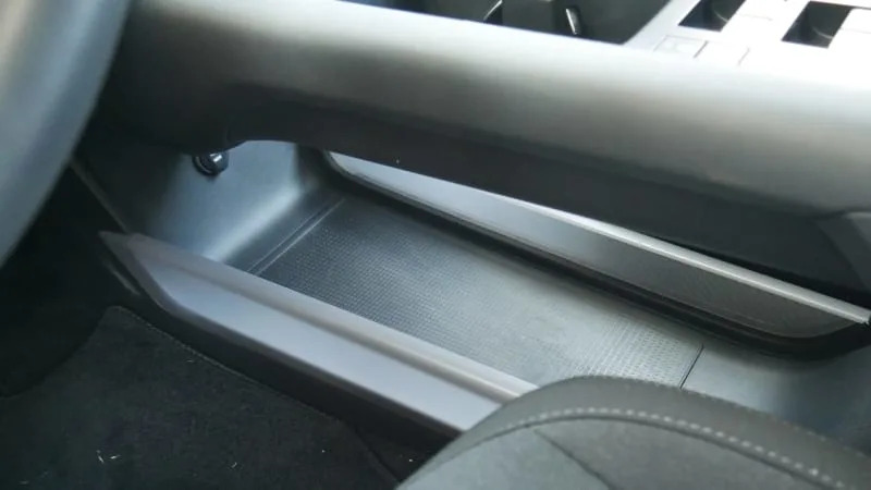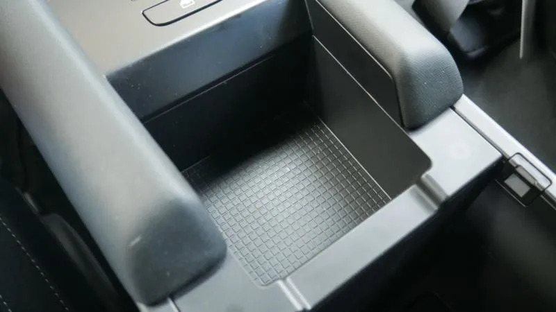 This smaller bin, however, is still hard plastic. Located aft of the window switches and partially covered by the armrest bin cover, it would be a decent place to put a phone if it didn’t allow it to slide all over the place.
