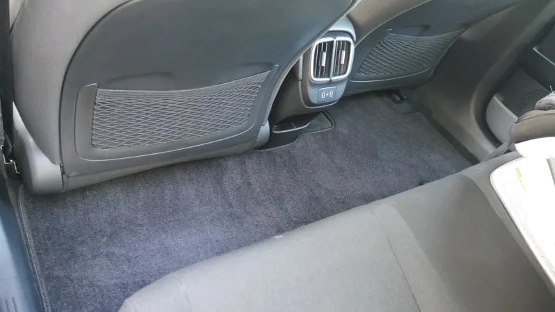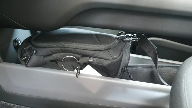Like most EVs, there is abundant floor-level storage, in this case, underneath the floating center console. It is big enough to fit my camera bag, which I’d say is comparable to an average purse.