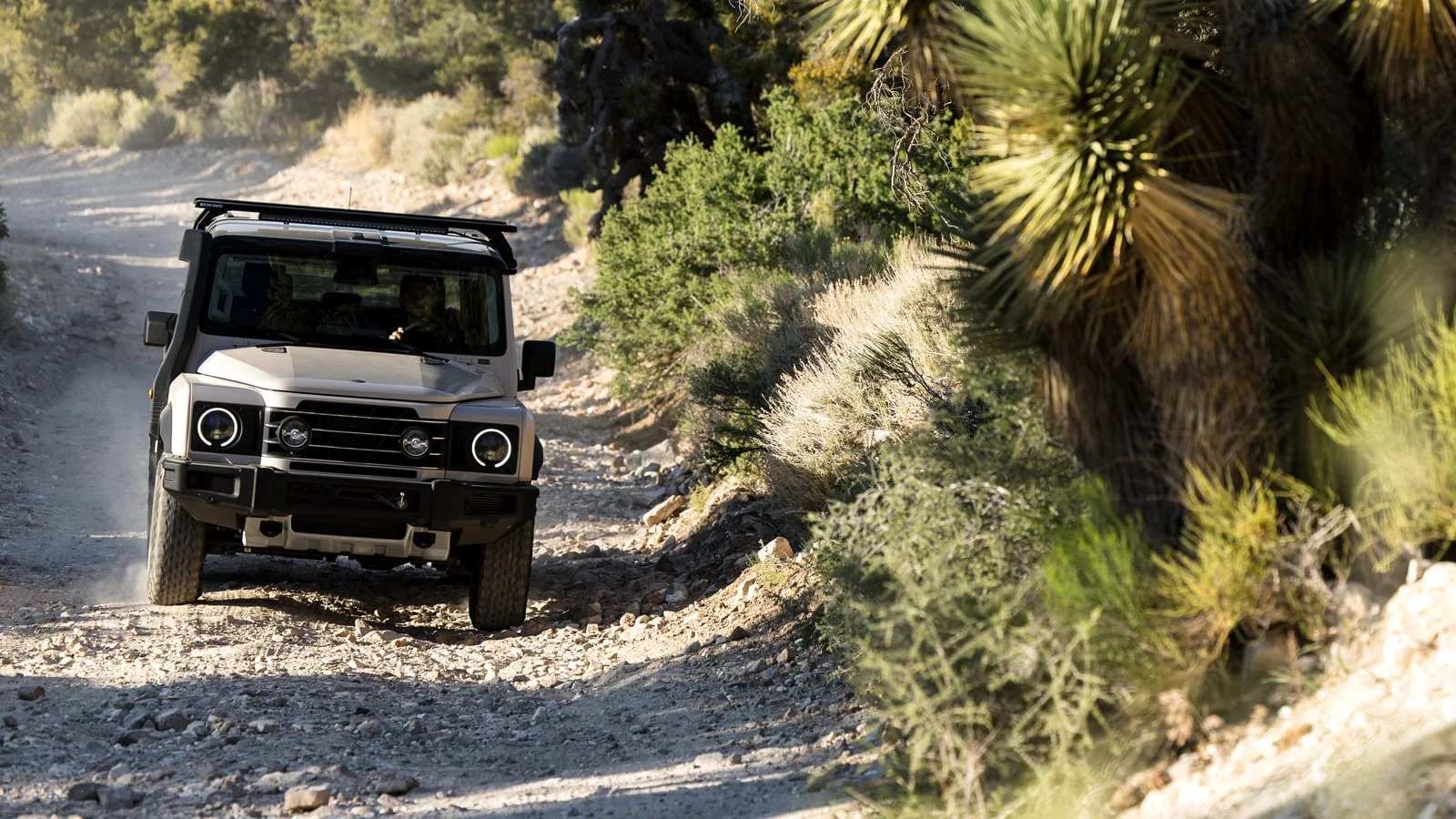 The American venue chosen to showcase the Quartermaster could certainly be mistaken for Australia, albeit with beige dirt instead of red, and Joshua trees in lieu of eucalyptus. We’re tackling dusty, rocky trails just outside Joshua Tree National Park, often at a decent clip that has the sturdy Grenadier proving resilient to the vicious vibrations caused by washboard surfaces and the solid thwacks of big heaves.