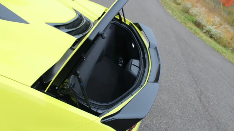 It’s worse for cargo. The base 2001 Corvette could swallow 25 cubic feet of cargo thanks to its hatch. The hardtop and trunk on the Z06 shrunk that to 13.2 cubic feet in one square-ish space. The C8 needs a frunk and an odd polygonal trunk to hold 12.6 cubic feet. Colleague Zac Palmer wrote that 12.6 cubes “translates into plenty of luggage space for a two-person road trip.” I need to get his luggage recommendations or his packing tips or his road trip agenda. I had to play Tetris in the C8 to store the same bags I throw into the C5 without thought.