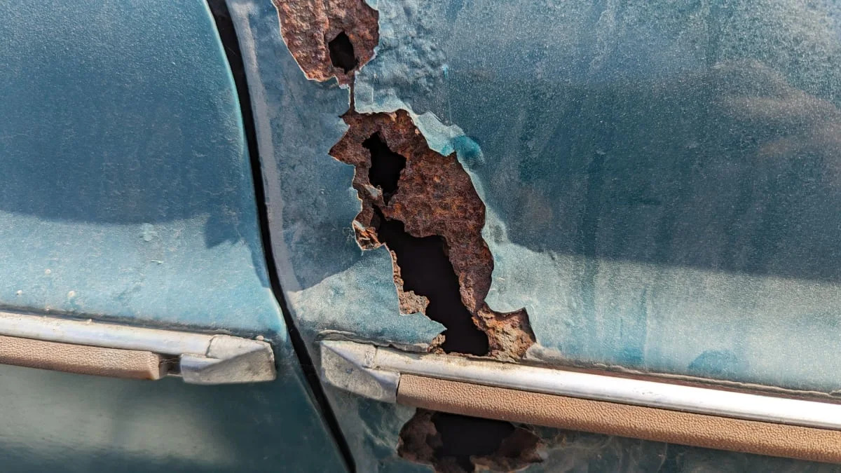 This car appears to have sat outside near the Pacific for too many decades; it has the top-down rust associated with living in the salt spray and fog near beaches in NorCal. This is pretty bad, but I’ve seen worse. This Volvo’s final parking spot is just about a mile from crashing ocean waves.